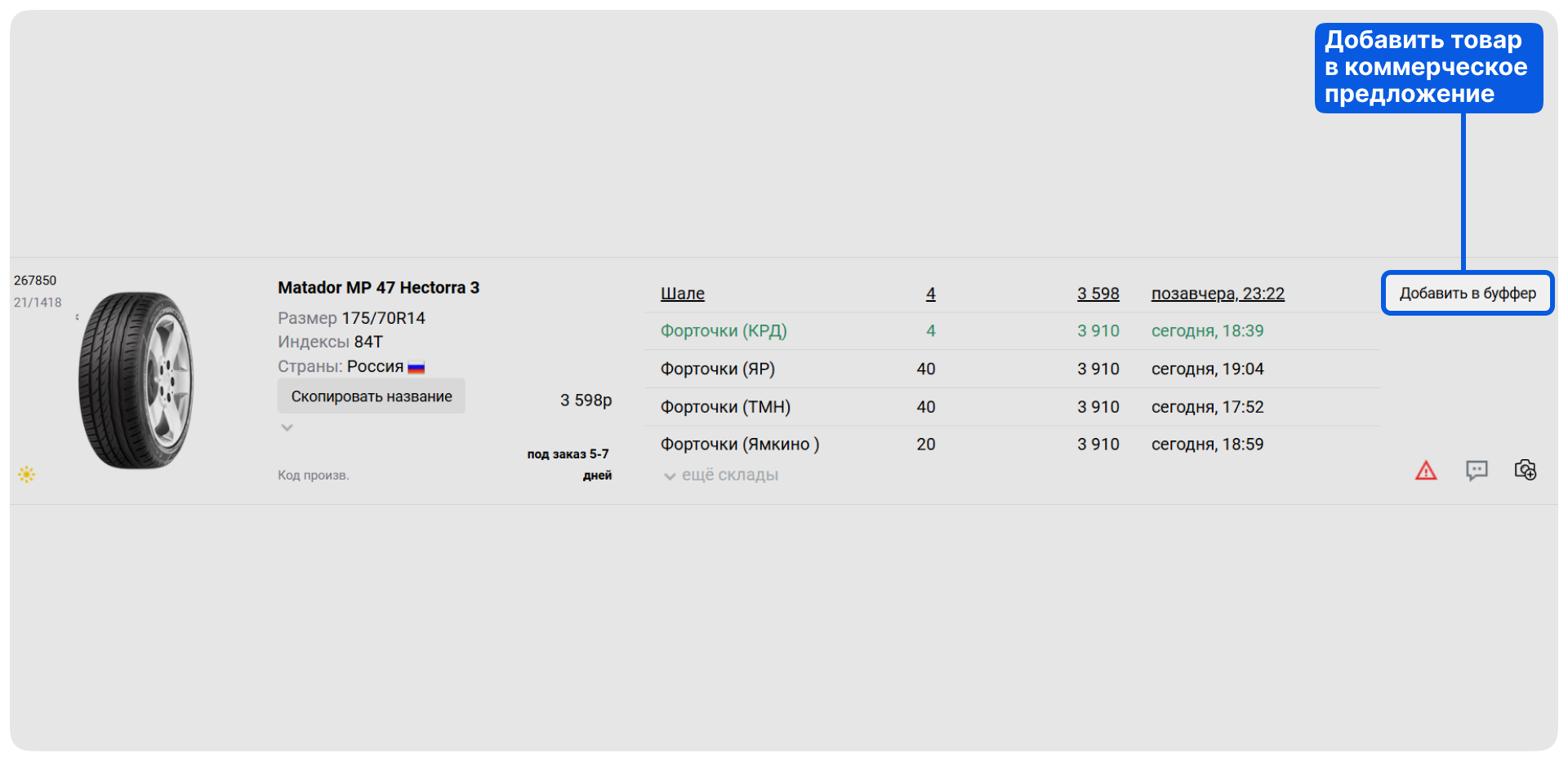 - Справа от нужного товара нажмите «Добавить в буфер».